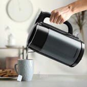 В корпус прибора помещена колба для воды – между ней и внешними стенками чайника находится прослойка воздуха. Такая конструкция позволяет существенно замедлить остывание горячей воды, поэтому во время чаепития вам не придется вновь включать чайник, чтобы заварить горячий напиток. Благодаря двойным стенкам и воздушной прослойке между ними внешняя часть корпуса не нагревается даже в процессе закипания воды. Можете быть уверены, что при случайном прикосновении к работающему чайнику вы не испытаете дискомфорта и не обожжетесь.