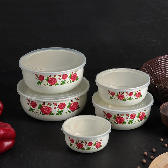 Набор салатников с крышками 5шт. эмаль 11/12/14/16/18см. 4573224