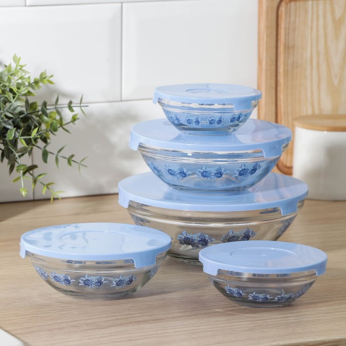 Набор салатников с крышками 5шт. стекло Доляна 4962960