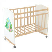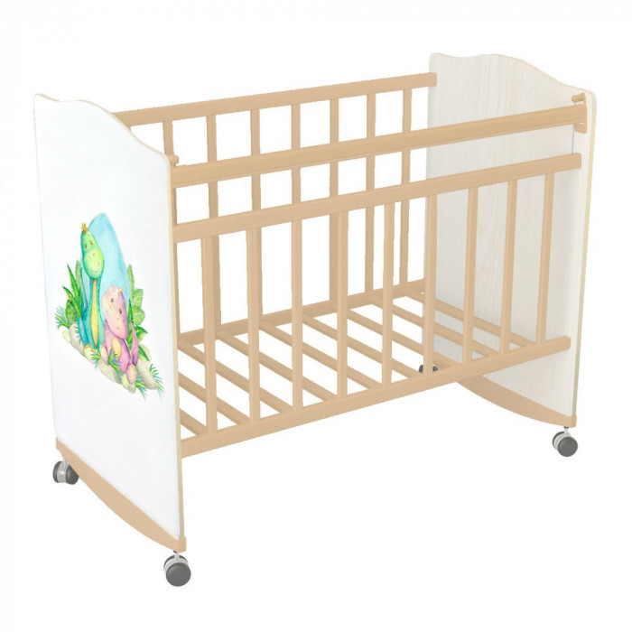 Кроватка детская My Dream Динозаврики кол.+кач., фигурн.спинка, белый-берёза