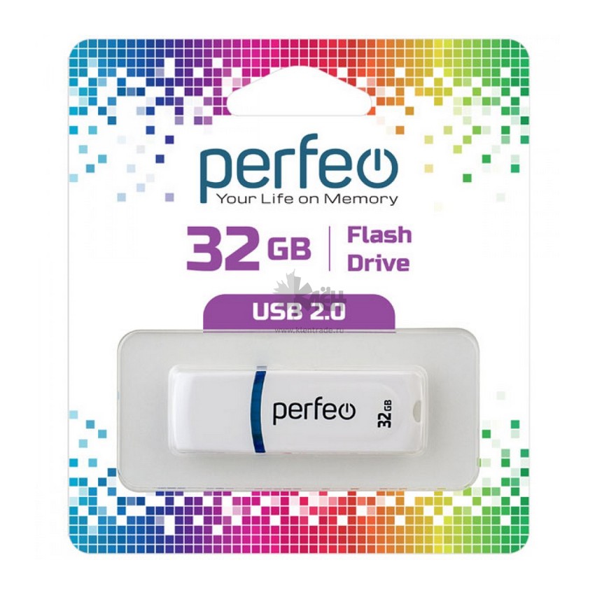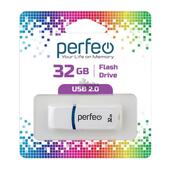 USB накопитель Perfeo с колпачком, модель C09 объемом памяти 32GB, белого цвета имеет компактный размер.