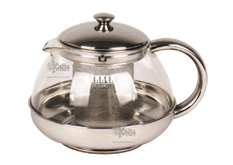 Чайник заварочный 0,75л. BEKKER BK-398 De Luxe стекло/нерж.сталь, круглый