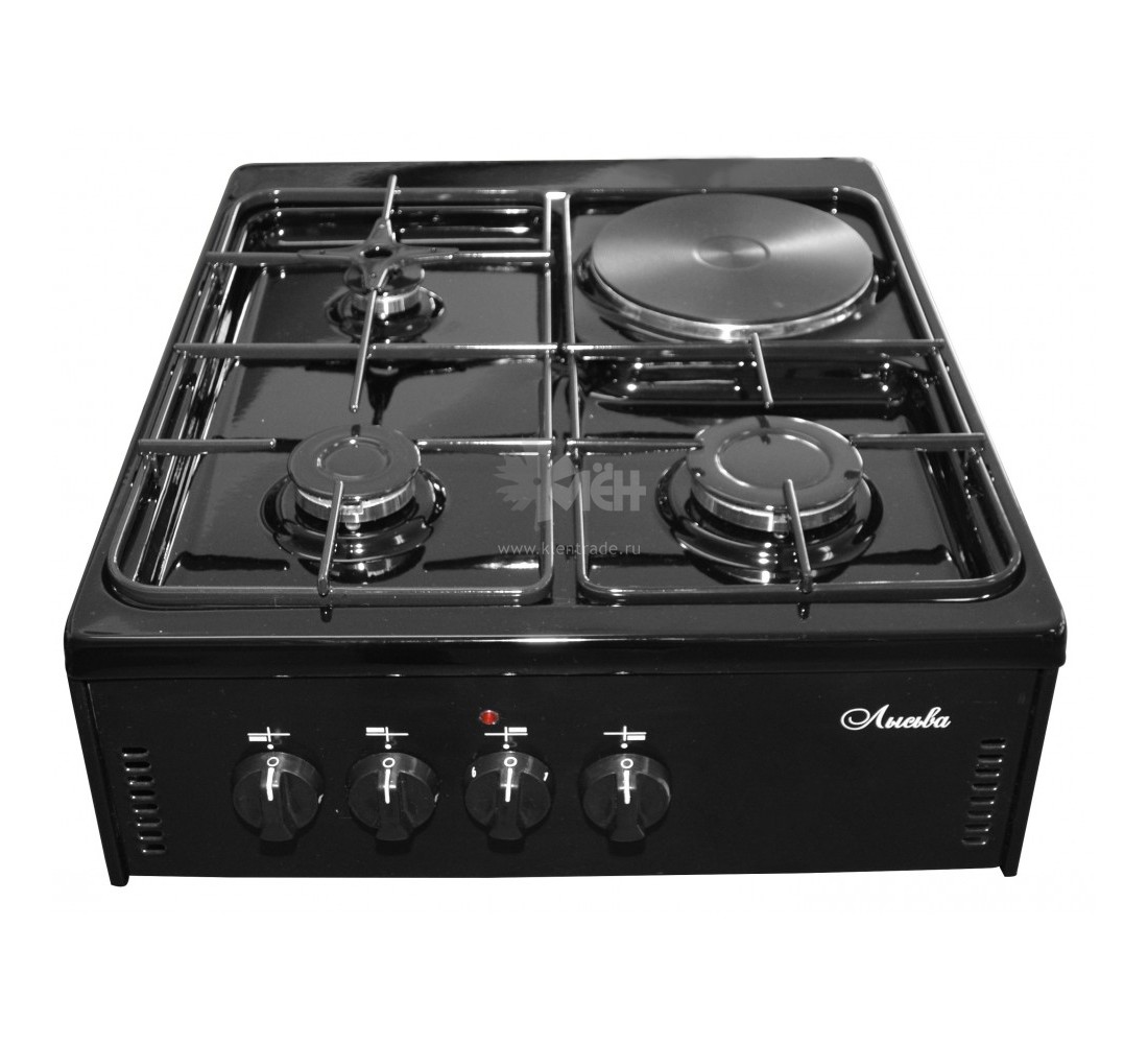 Комбинированная плитка Лысьва ПГЭН 1/3г6 выполнена в чёрном цвете, благодаря этому прибор отлично дополнит кухонный интерьер. Модель оснащена 3-мя газовыми и одной электрической конфорками.