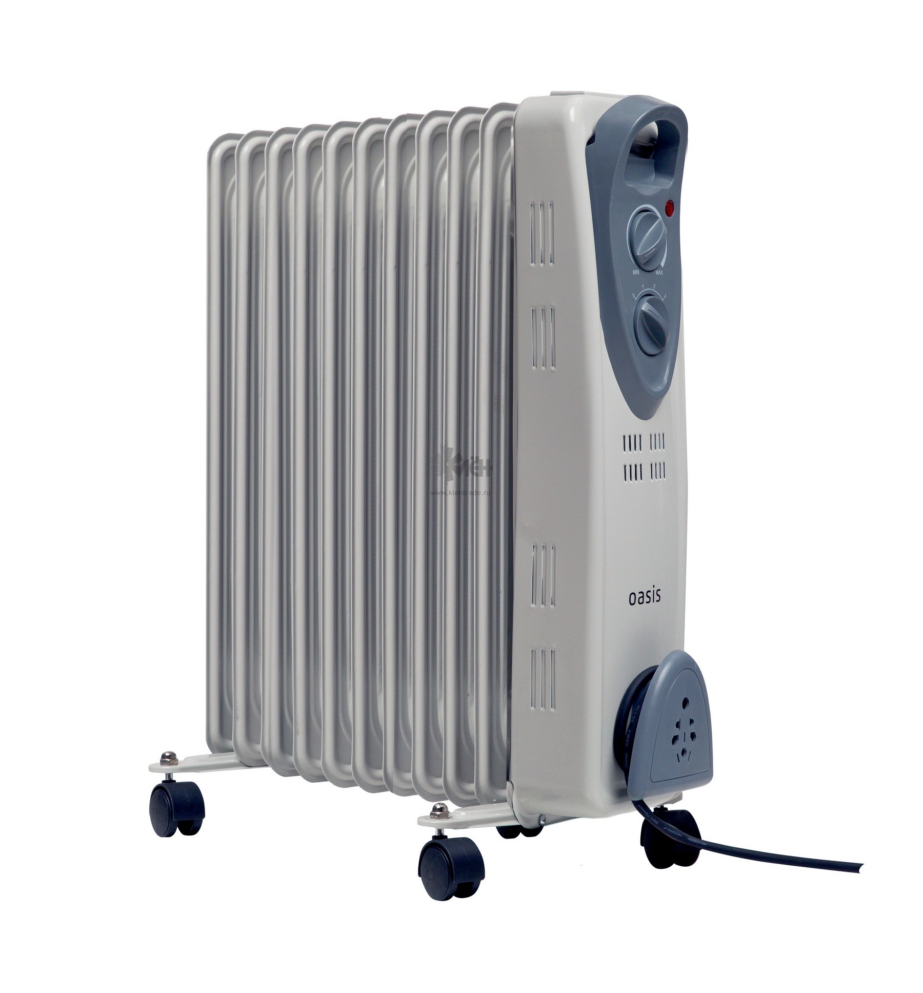 Масляный радиатор Oasis UT-20 обладает мощностью энергопотребления 2000 Вт, чего достаточно для обогрева комнаты до 20 м. Радиатор выполнен в серо-белом цвете, в девяти секциях.