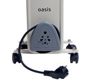 Oasis UT-20 оснащен регулированием уровня нагрева в зависимости от выбора желаемой температуры, термостатом, колесами и ручкой для передвижения, степенью защиты IP 20, защитой от перегрева, что подразумевает отключение при нагреве до установленных градусов. Таймера, дисплея, пульта, вентилятора не предусмотрено. Прибор работает от сети с напряжением 220-240 В.