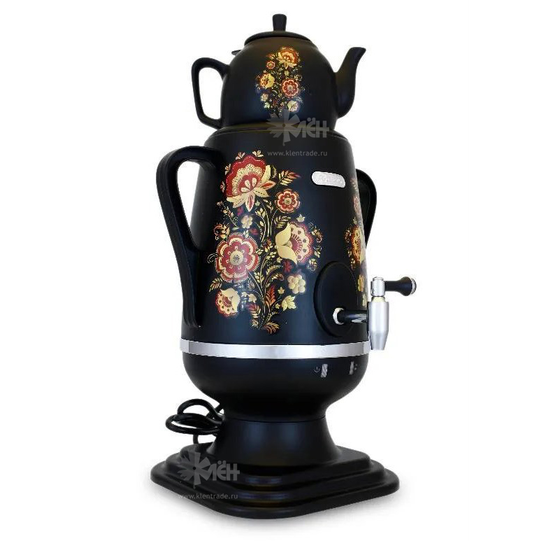 Самовар электрический Добрыня DO-431 классической формы, оснащен керамическим заварочным чайником объемом 1 литр с сеточкой для чая из нержавеющей стали. Расписной корпус черного цвета из пластика объемом 4 литра. Вместительный объем самовара позволит без труда угостить чаем большую компанию. Функция поддержания температуры сохранит воду горячей. Закрытый нагревательный элемент безопасен и долговечен.
