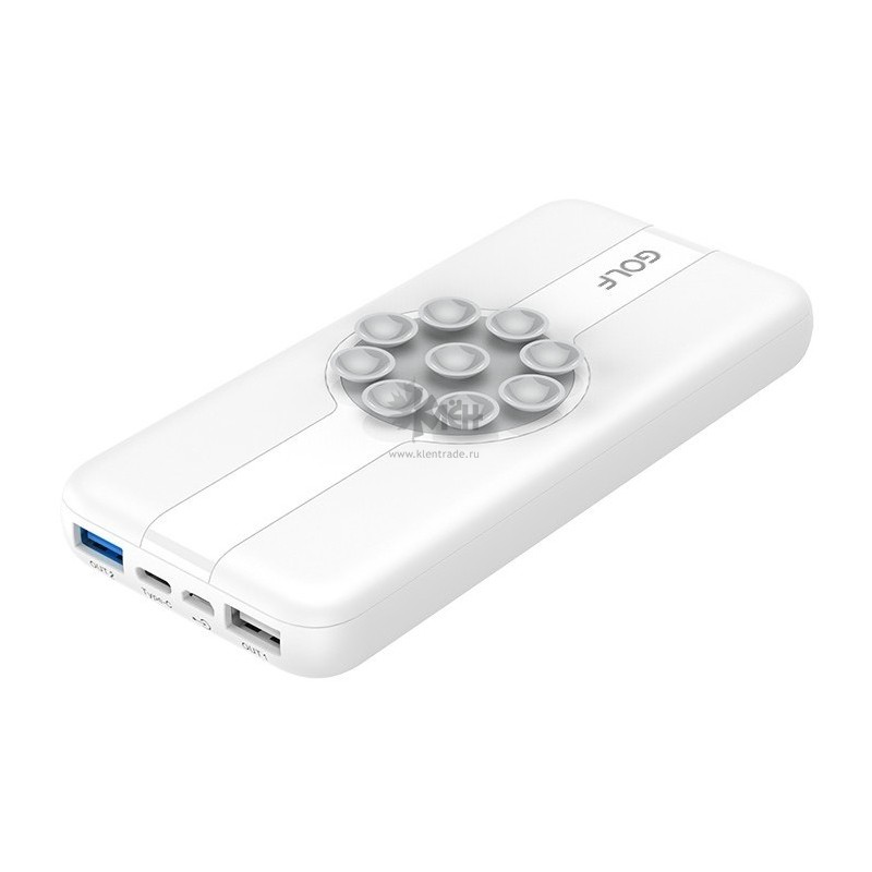 Внешний аккумулятор 10 000mAh Perfeo GOLF W21 /wireless output 2A/PD + QC/Type-C/Выход: 3A, white