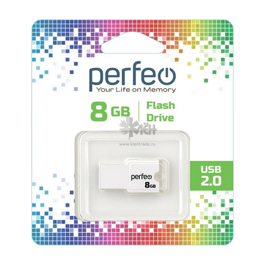USB накопитель Perfeo, модель M01, серия "Mini", объемом памяти 8GB, белого цвета имеет компактный размер.