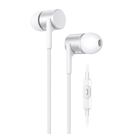 Наушники с микрофоном Внутриканальные OLMIO Onyx серебристые металл, c кнопкой 039201