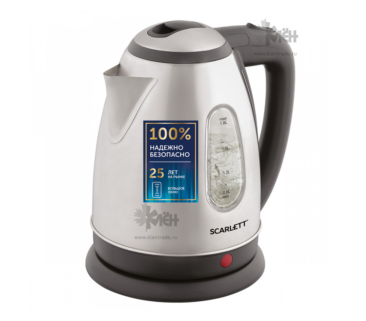 Электрический чайник SCARLETT SC-EK 21 S88 с увеличенным объемом 1,8 л оснащён большим прозрачным окном для контроля уровня воды. Эргономичная ручка, традиционная система открытия крышки, закрытый нагревательный элемент сделают эксплуатацию прибора еще проще и комфортнее.