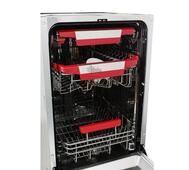 Встраиваемая посудомоечная машина LERAN BDW 45-108 в ширину меньше 45 см, при этом она вмещает 10 комплектов посуды, работает очень тихо и экономит воду и электроэнергию. Современная компоновка с тремя распылителями и регулируемой средней корзиной улучшает качество мойки и более эффективно использует пространство. Электронное управление с информативным дисплеем упрощают процесс настройки и выбора режимов. Всего загружены 8 программ мойки, есть интенсивная, экономичная и быстрая программы, функция замачивания и отложенный старт.