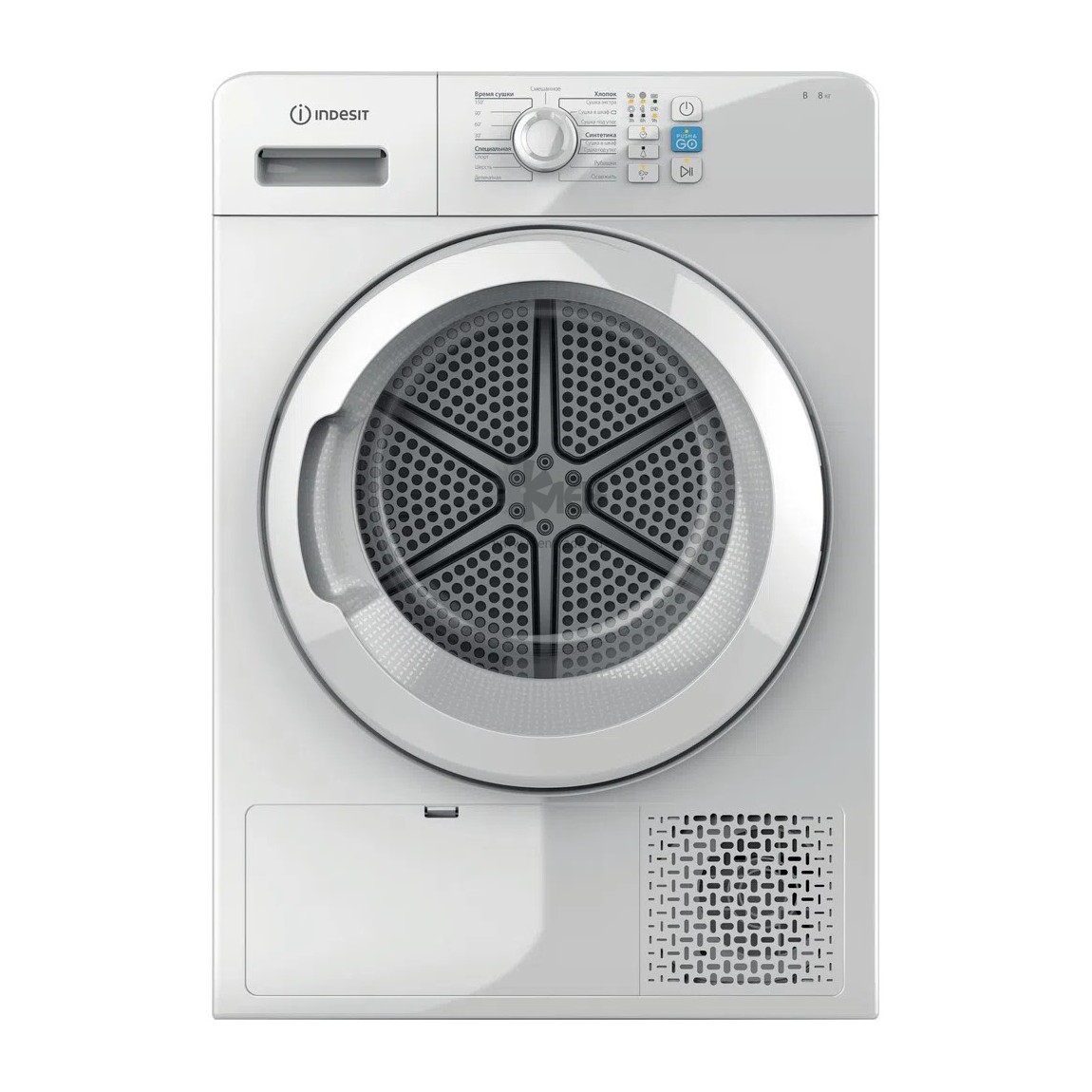 Сушильная машина Indesit YT CM08 8B RU глубиной 65 см с максимальной загрузкой барабана 8 кг и 15 программами работы, включая режим "Сушка в шкаф", программы для детской, спортивной и джинсовой одежды.