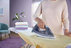 Благодаря системе "капля-стоп" вы можете гладить деликатные ткани при низкой температуре, не беспокоясь о появлении пятен воды на одежде.