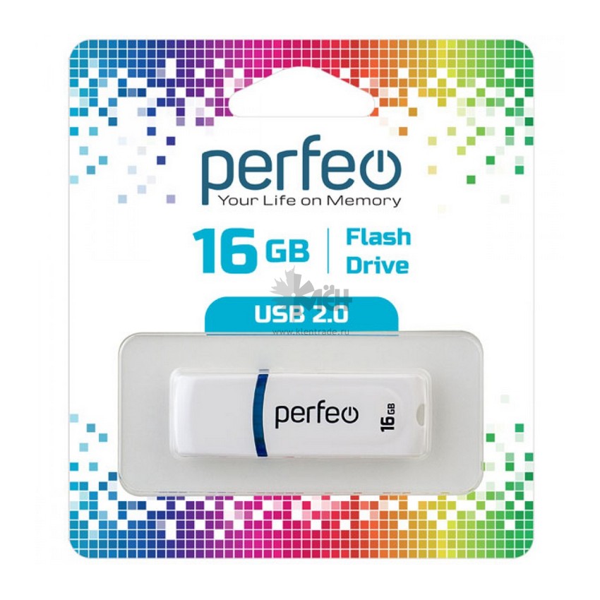 USB накопитель Perfeo с колпачком, модель C09 объемом памяти 16GB, белого цвета имеет компактный размер.