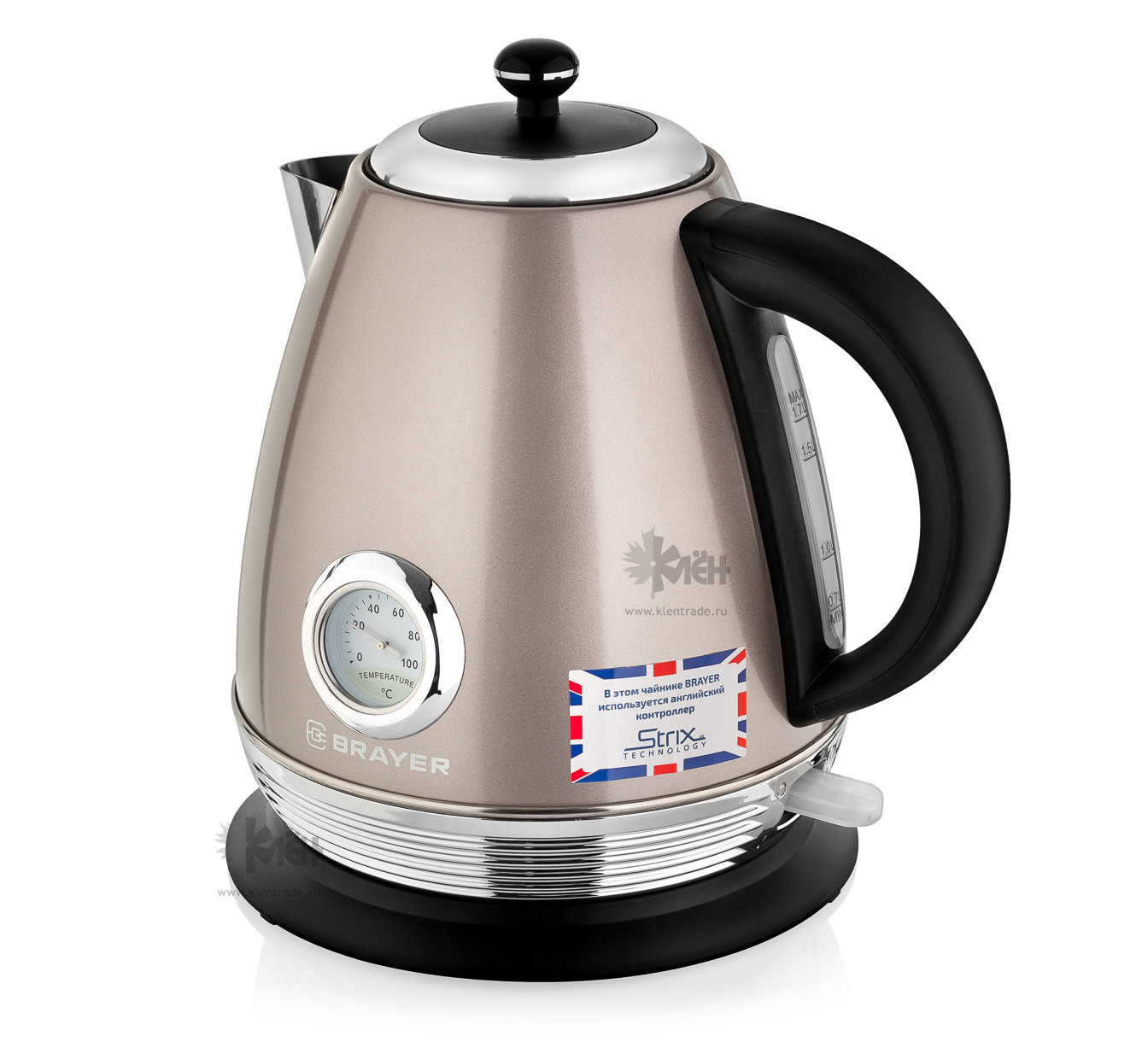 BRAYER BR1007 прост и удобен для любого пользователя, это современная модель электрического чайника с наличием термометра. Прибор выполнен в корпусе из нержавеющей стали.