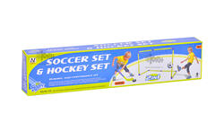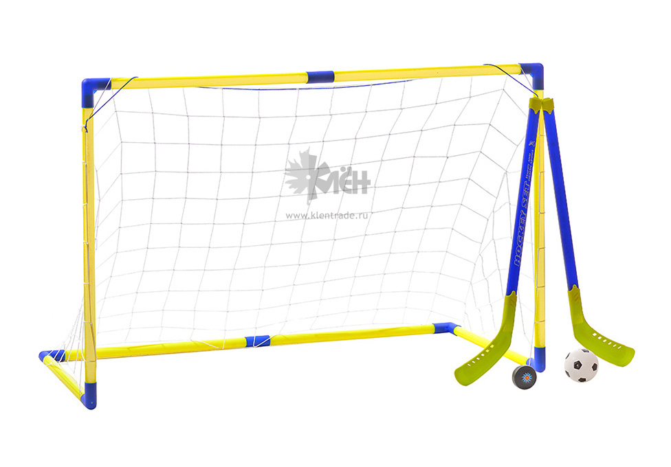 Игровой набор для начинающих хоккеистов и футболистов. Комплект выполнен из пластика что придает конструкции легкость и безопасность.
