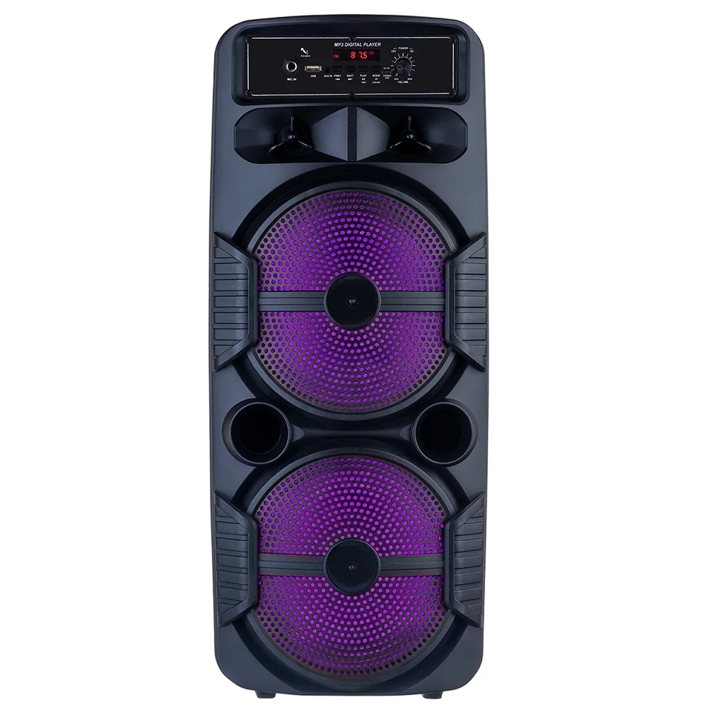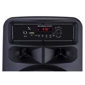 Это портативная акустическая система с проводным микрофоном и пультом управления в комплекте по приемлемой цене.