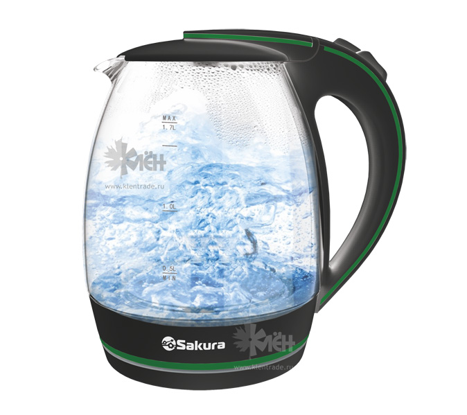 Чайник стеклянный SAKURA SA-2730BK чёрн./зел.