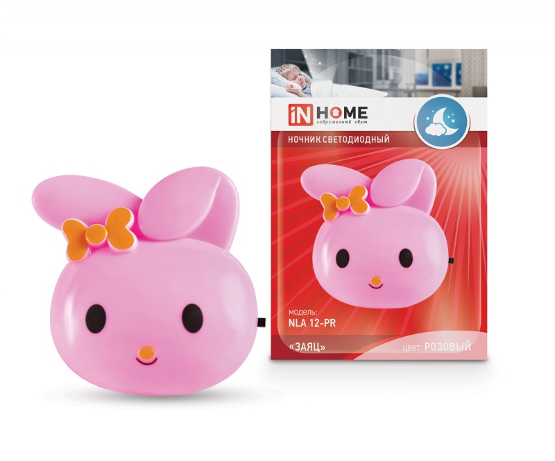 Ночник IN HOME NLA 12-RP Заяц с выкл., розовый