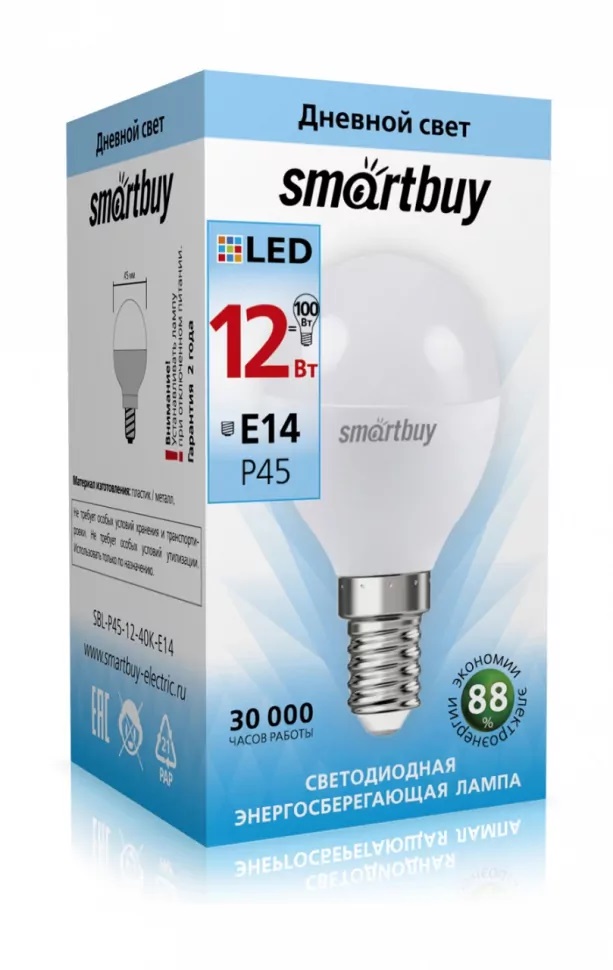 Лампа светодиодная Smartbuy P45-12W- E14 4000K