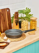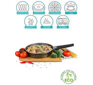 Каменное покрытие является одним из самых прочных и долговечных, не утрачивает свои антипригарные свойства в течение всего срока службы. Позволяет готовить вкусную и полезную пищу с минимальным количеством масла, не содержит PFOA и является экологически безопасным. Эргономичная ручка Soft-touch делает процесс приготовления приятным и комфортным. Современный стильный дизайн станет украшением любой кухни. Подходит для всех типов плит, включая индукционные.