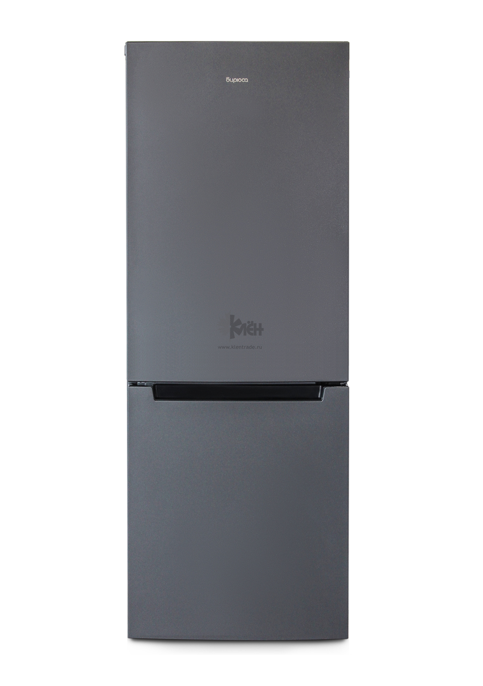 Двухкамерный холодильник Бирюса 820NF выполнен в цвете "матовый графит". Морозильник расположен в нижней части.