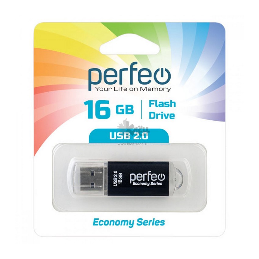 USB накопитель Perfeo с колпачком, модель E01 объемом памяти 16GB, чёрного цвета имеет компактный размер.