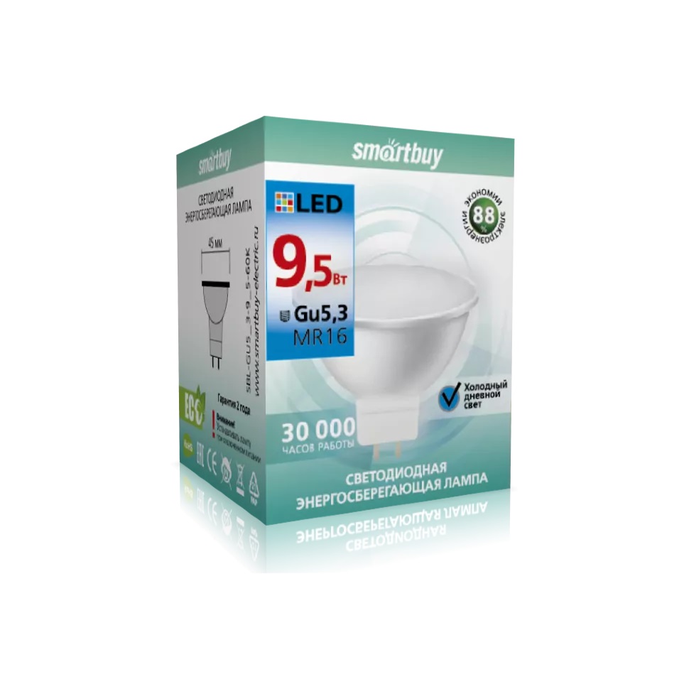 Лампа светодиодная Smartbuy GU5.3-9.5W 6000K