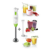Блендерный набор BOSCH MSM-2623G предлагает удобный способ приготовления домашних супов, соусов и напитков. С помощью мощного мотора и погружной насадки с острыми ножами вы быстро можете достичь желаемого результата.