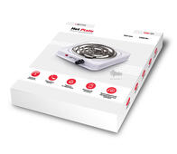 Электрическая плитка VENTO VSP-01 выполнена в белом корпусе, благодаря этому прибор отлично дополнит кухонный интерьер. Модель оснащена поворотными переключатели с пятью уровнями мощности. Поверхность плитки изготовлена из эмалированного металла.