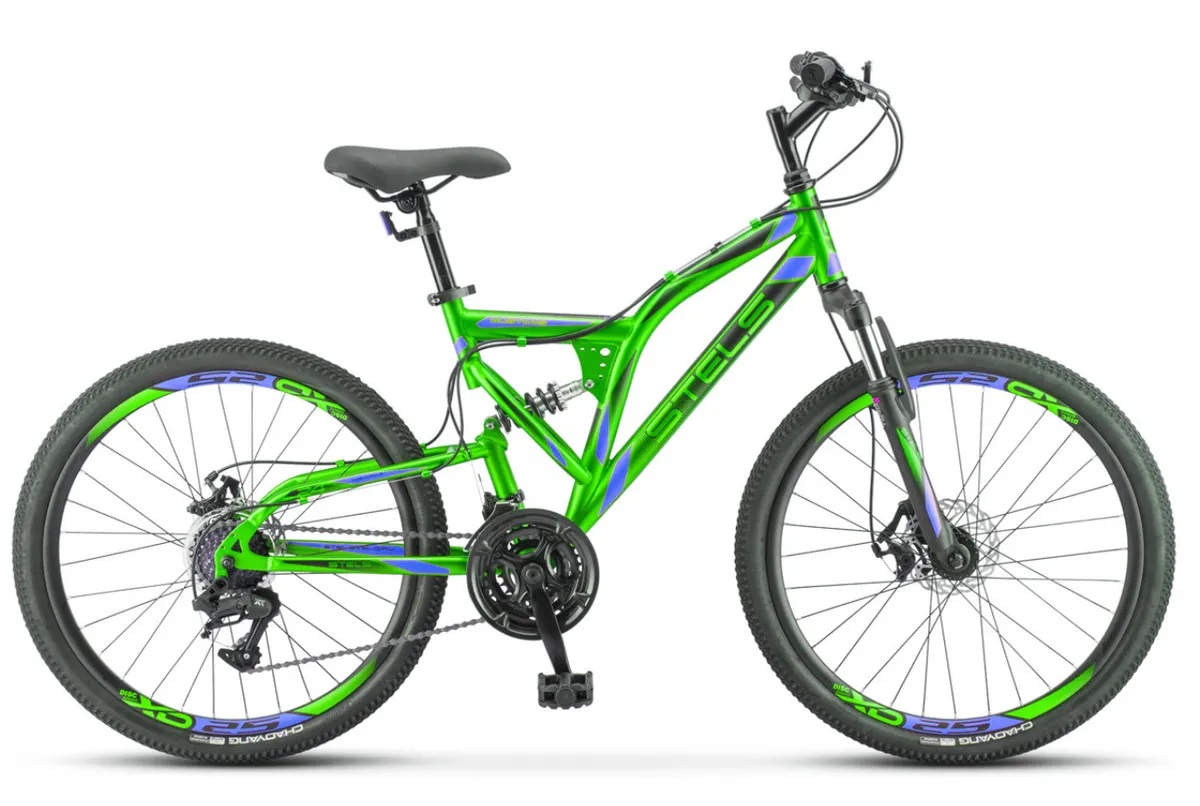 Велосипед 24" STELS Mustang MD двухподвес, рост 16", 18ск. неоновый/зелёный