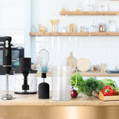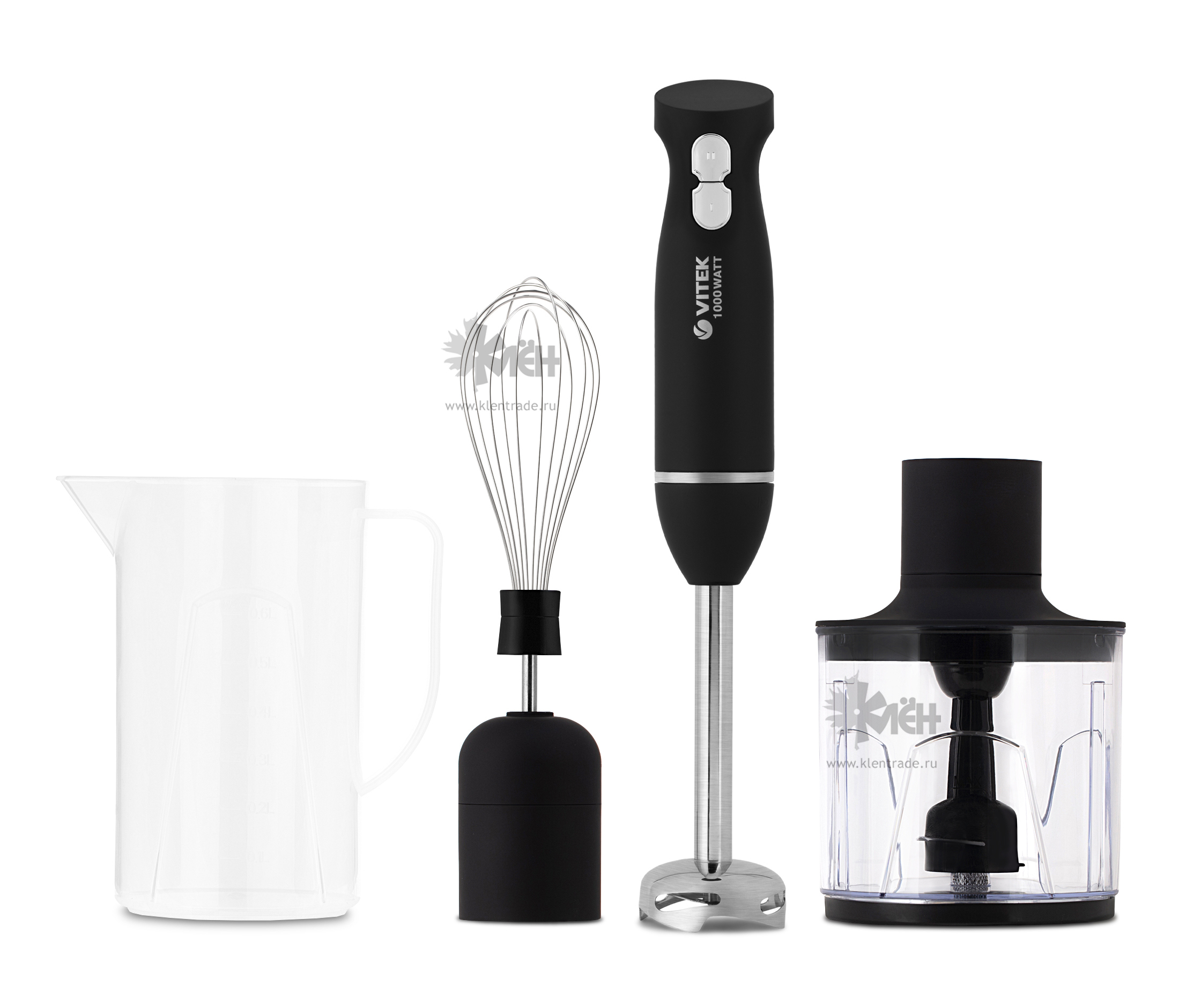 Что лучше купить - чоппер, способный быстро измельчить твердые продукты, или универсальный погружной блендер, который не занимает много места? Не тратьте время на муки выбора. Блендерный набор VT-8527 с тремя насадками подходит для любых задач. Мощный (1000Вт) мотор не заставит вас долго ждать результата.