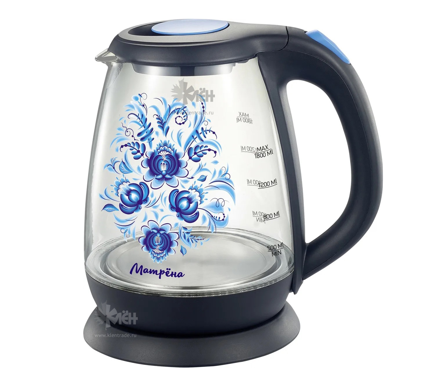 Чайник стеклянный МАТРЕНА МА-008 черный гжель (008339)