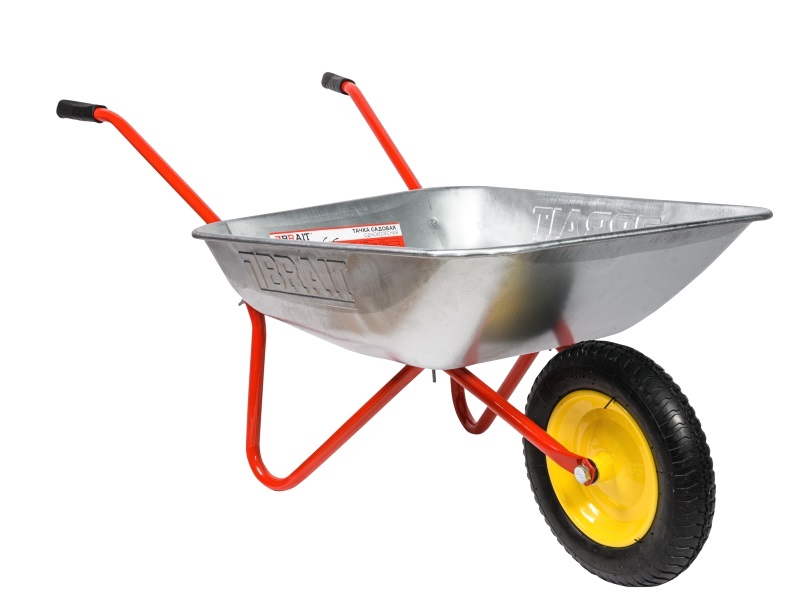 Тачка садовая 80 BRAIT (пневмо) с оцинкованным корытом емкостью 65 литров и грузоподъемностью до 80 кг кг. Тачка предназначена для работ в саду. На тачке можно перевозить грузы: дачный мусор, дрова для печи,и т.д.