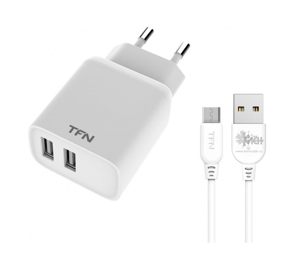 СЗУ 2400mAh TFN Rapid 2USB + microUSB White 1446
