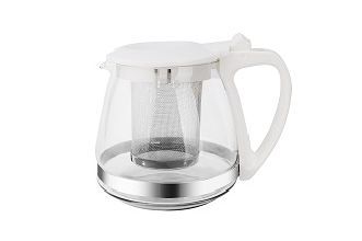 Чайник заварочный 1л. 80125 стекло/пластик, фильтр-сеточка, кругл., белый