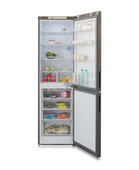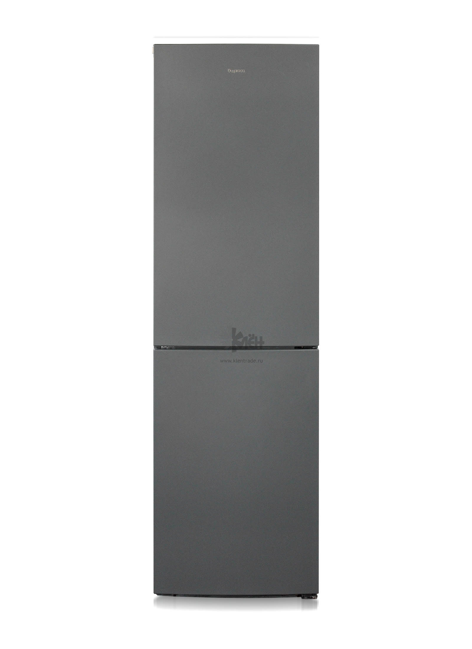 Двухкамерный холодильник Бирюса W6049 выполнен в цвете "матовый графит". Морозильник расположен в нижней части.