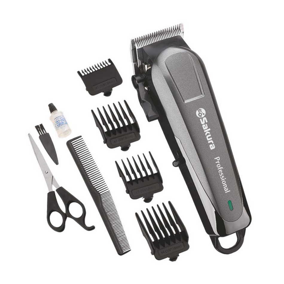 Набор для стрижки SAKURA SA-5179BK относится к профессиональной серии приборов для стрижки. В комплекте 4 насадки-гребня на 3/6/9/12 мм. Прибор имеет лезвия из углеродистой стали, Li-Ion аккумулятор 2000 mAh.