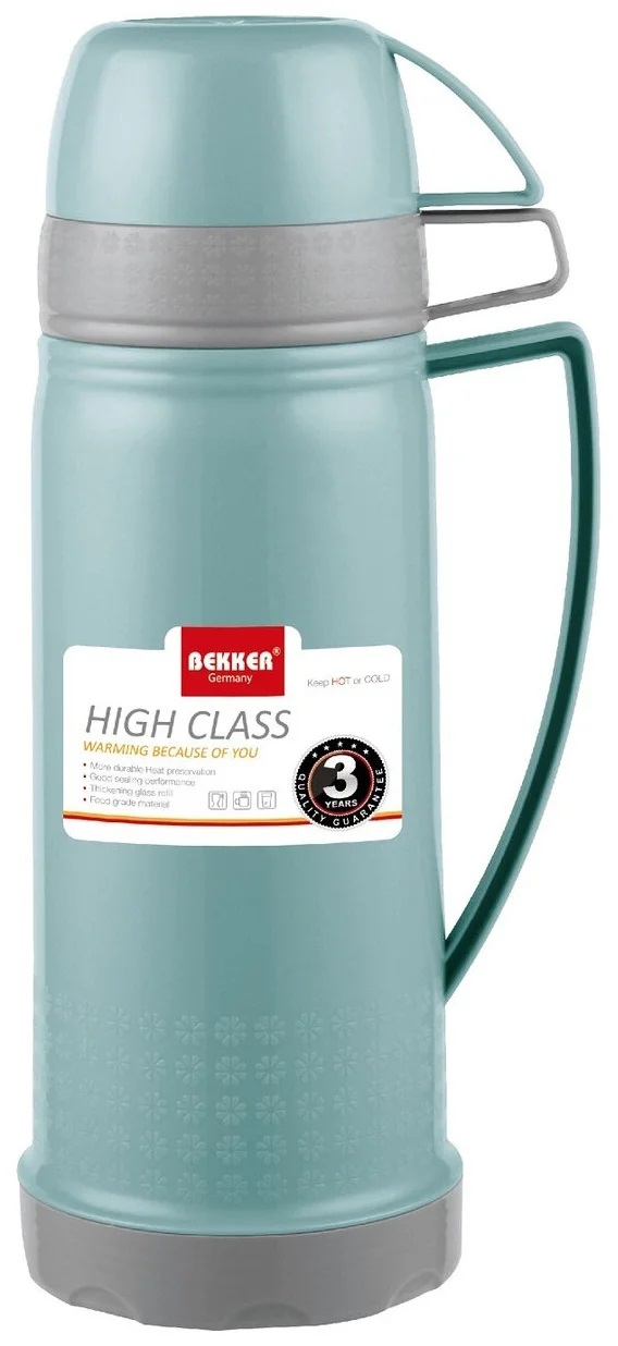 Термос стекло 1,8л. BEKKER BK-4400 Premium универс.горло, бирюзовый