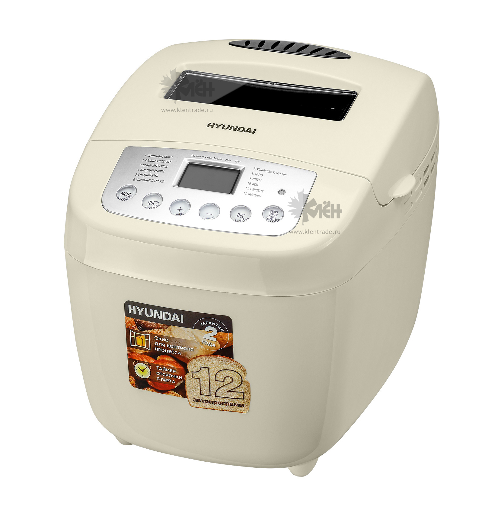 Хлебопечь Hyundai HYBM-P0111 оснащена удобным интерфейсом и простыми в использовании клавишами. Кроме того, прибор имеет встроенный таймер, благодаря которому можно установить время начала выпекания. С этим прибором вы сможете ощутить вкус горячей французской булки, молочного или ржаного хлеба, разнообразных кексов.