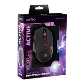 Оптическая мышь Perfeo "Active" с внутренней LED подсветкой. Высокоточный сенсор с переключаемым разрешением 1000 / 1600 / 3200 / 6400 DPI. Эргономичный дизайн обеспечит комфортную работу. Plug’n’Play, не требуется установка ПО. Системные требования: Windows 10/8/7/XP, Mac OS, свободный порт USB