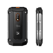 Мобильный телефон в защищенном корпусе с роддержкой двух сим-карт, слотом для карты памяти объемом до 32 Гб встроенной фотокамерой, FM-радиоприемником.