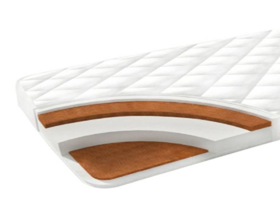 С двух сторон матраса находятся листы жесткой кокосовой койры абсолютно натурального экологического материала. Данный наполнитель является идеальным вариантом для формирования здоровой осанки у новорожденного. Не смотря на свою жесткость и прочность, кокосовая койра достаточно эластична и упруга. Также она имеет нулевую влагопроницаемость, а ее волокнистая структура обеспечивает нужный воздухообмен.