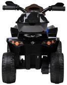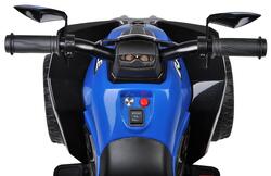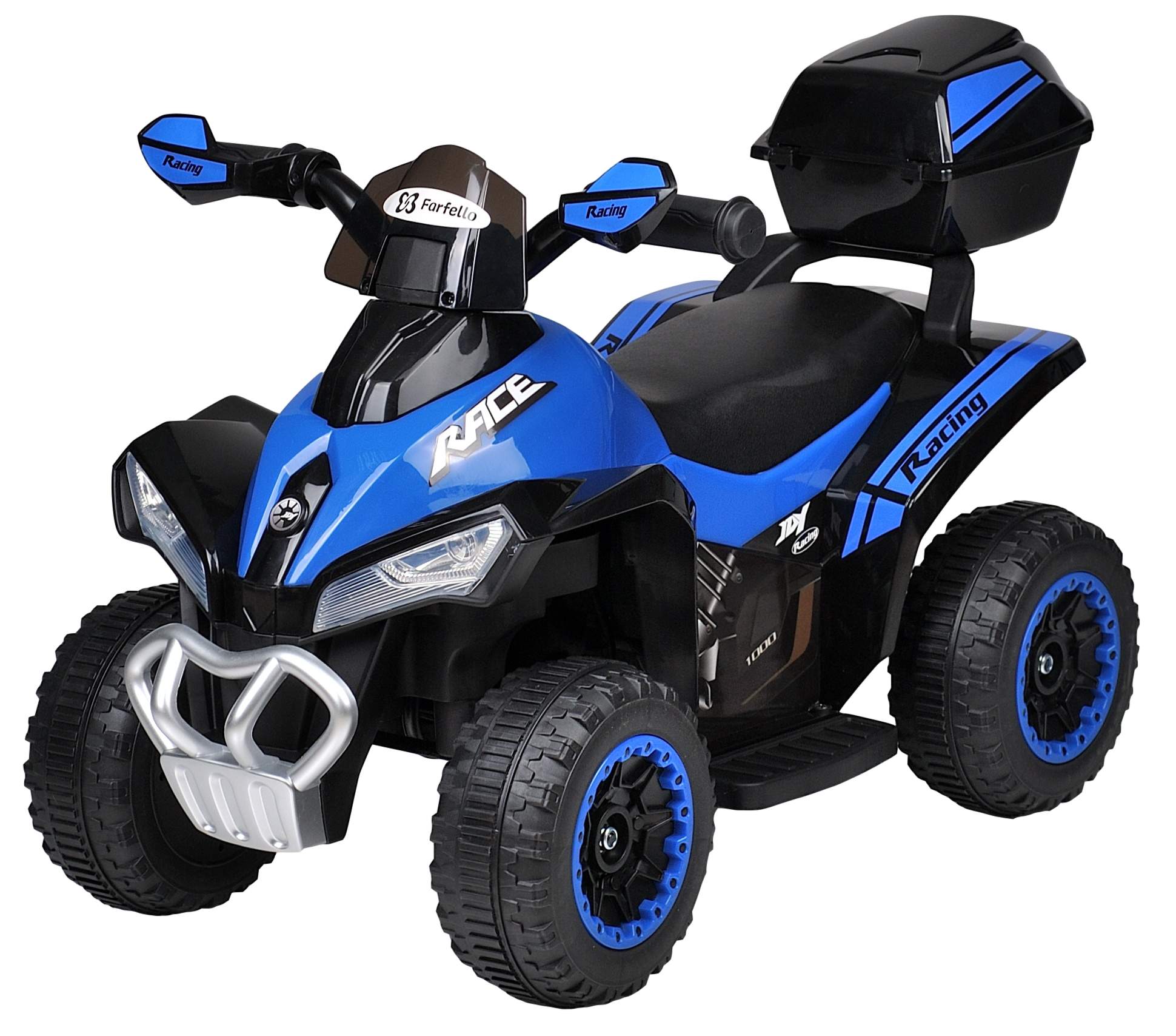 Транспорт приводится в движение нажатием педали газа ногой. Переключение скорости вперёд/назад с помощью кнопки на панели у руля. Широкое сиденье и не скользкие подножки позволяют комфортно разместиться ребенку на электромобиле, а мягкие прорезиненные ручки обеспечивают легкость руления квадроциклом. Есть небольшой богажник для хранения любимых игрушек.