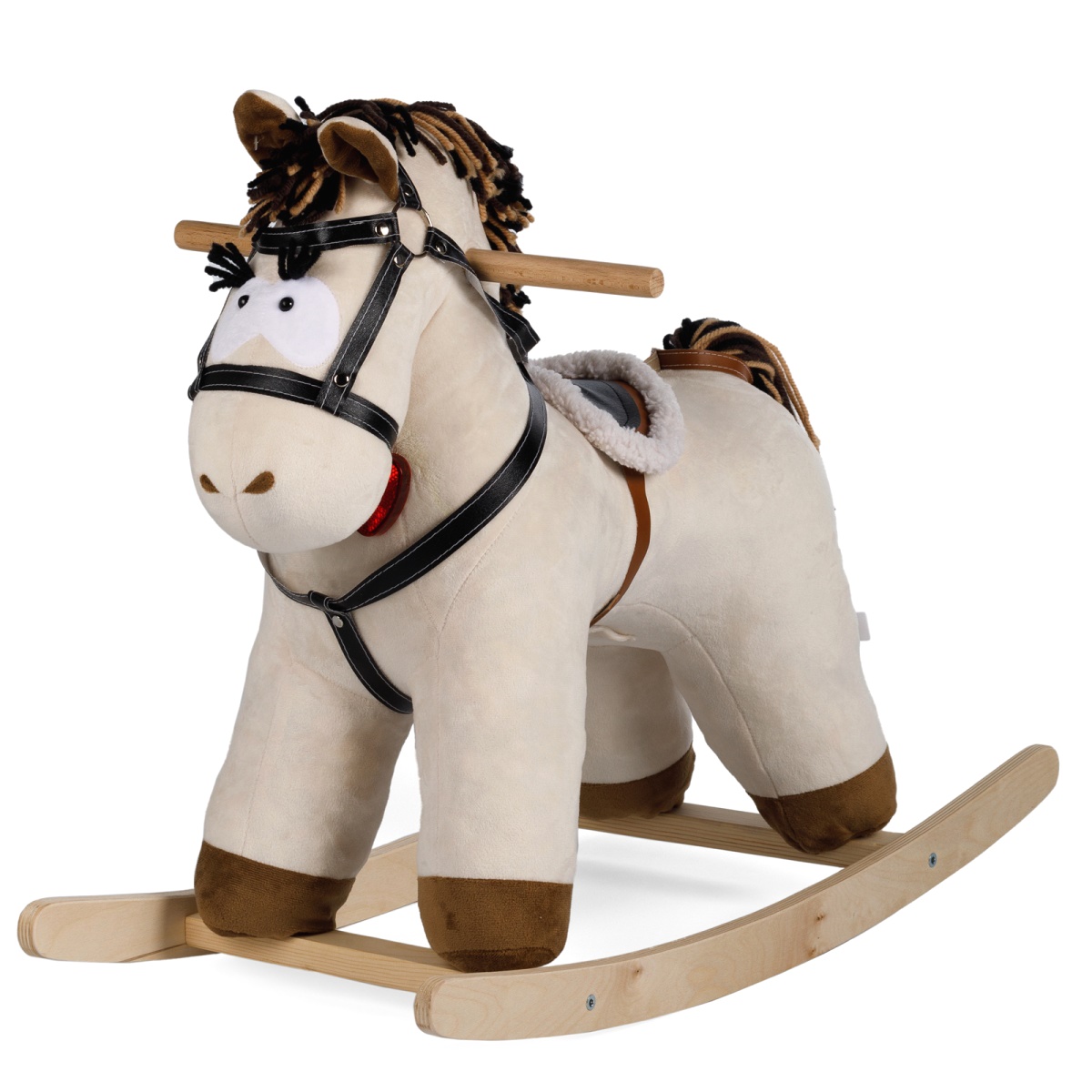 Детская лошадка-качалка с раннего детства станет для малыша не только помощником в тренировке вестибулярного аппарата, но и разовьет важные навыки ловкости, координации, а также будет стимулировать воображение и фантазию в игровой форме. Качалка снабжена боковыми ручками. Полозья качалки лошадки выполнены из натурального дерева, создают устойчивость за счет веса качалки и поддерживают безопасную амплитуду качания.