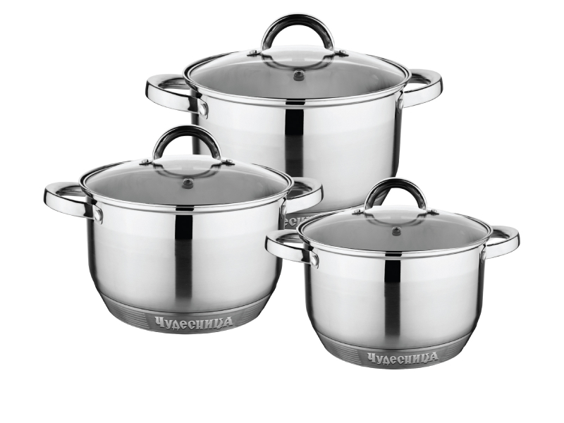 Набор посуды 6пр. Чудесница НП-3105 (3,9л+5,1л+6,5л) подходит для индукции