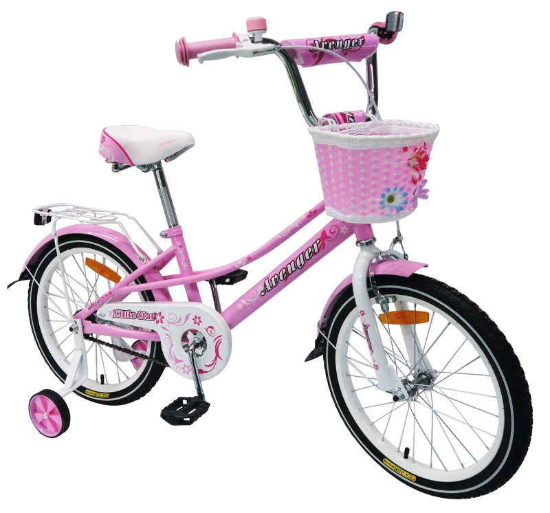 Велосипед 14" AVENGER Little Star с корзинкой розовый/белый