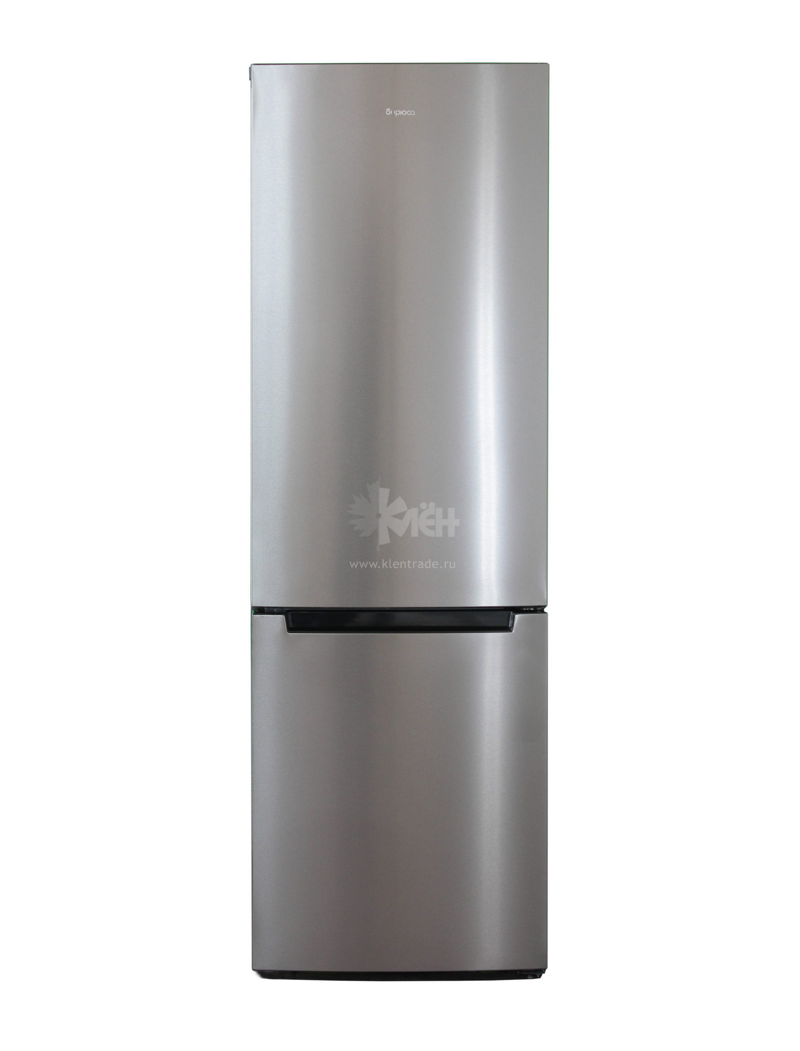 Двухкамерный холодильник Бирюса I860NF выполнен в цвете "нержавеющая сталь". Морозильник расположен в нижней части.