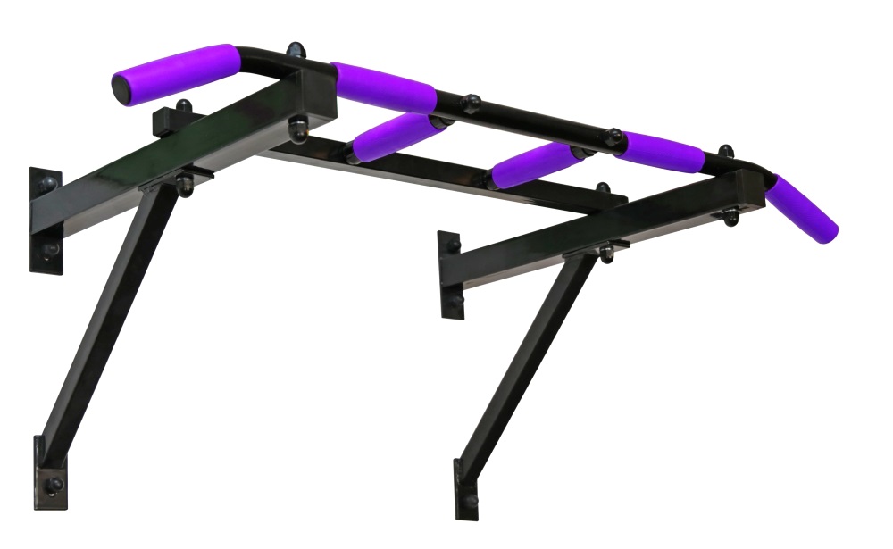 Турник настенный AbsoluteChampion трёххватный чёрный,фиолетовые ручки АЧ 7458