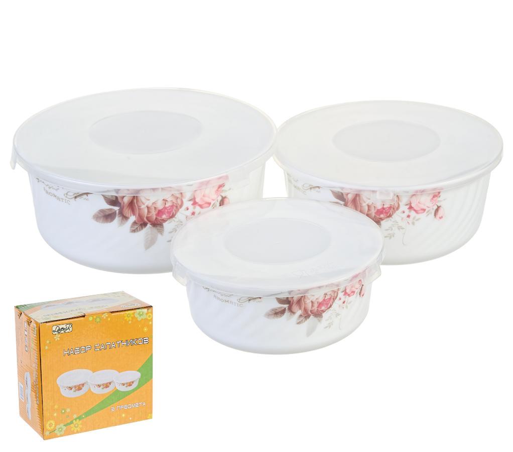 Набор салатников с крышками 3шт. стеклокерамика 0,55/0,95/1,35л. XMW-3T YF20032